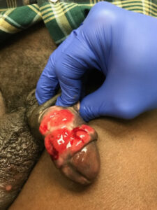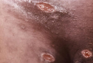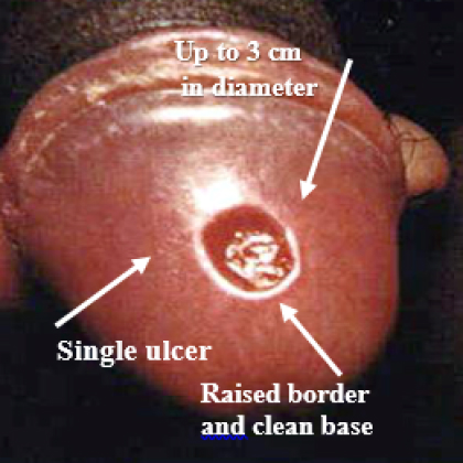 Basic Description: Results in a persistent ulcer. Usually irregular borders, well demarcated, multiple with bleeding base. There is an associated tender lymphadenopathy.